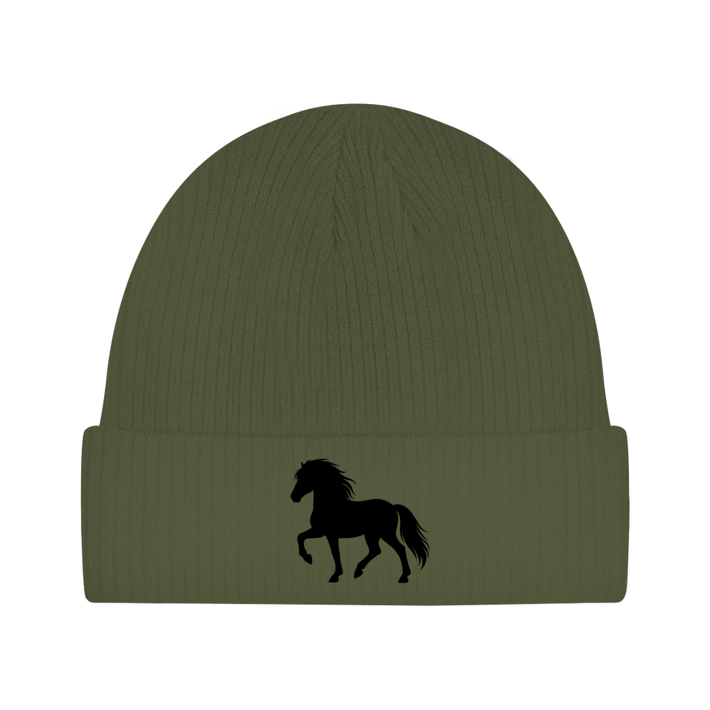 Tolle Islandpferde Strickmütze aus 100 % zertifizierter Bio-Baumwolle für die kalten Tage im Stall.